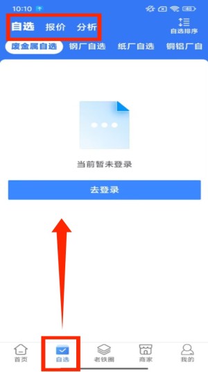 2、接着切换到 “自选” 页面,能看到自选分类标签,当前未登录时,点击 “去登录” 可完成账号登录。