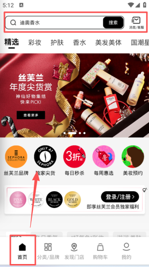 2.注册登录:用户需要注册并登录账号,才能在丝芙兰SEPHORA手机客户端上进行购物。