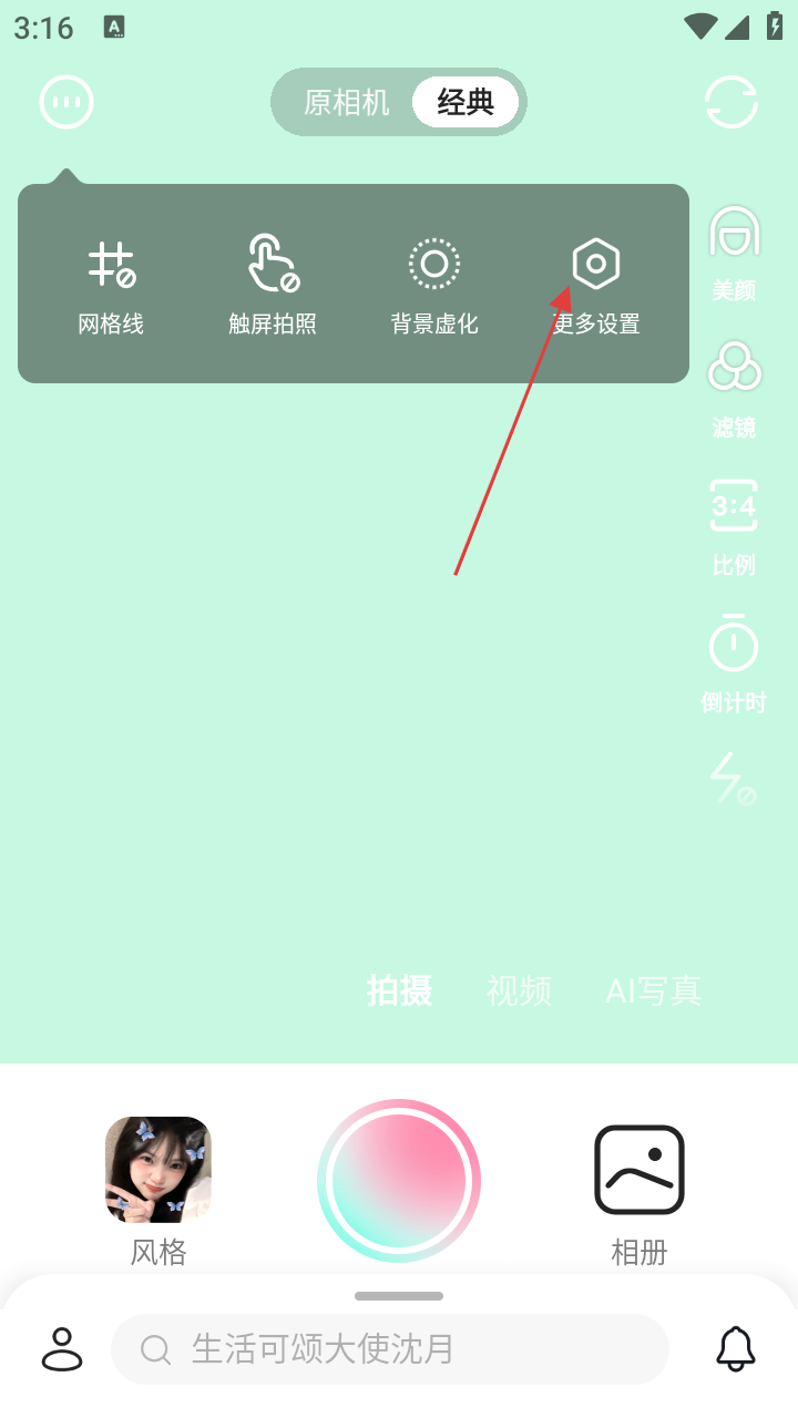 2、进入拍摄界面后,点击左上角的功能菜单按钮,可展开更多拍摄相关的功能选项,方便进行设置。