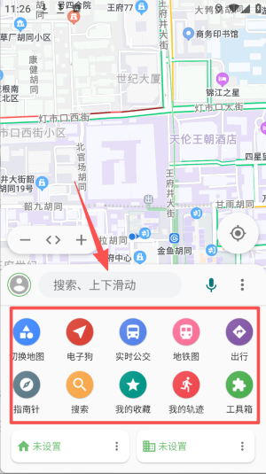 3、使用地图功能,滑动屏幕搜索或上下滑动浏览地图内容。