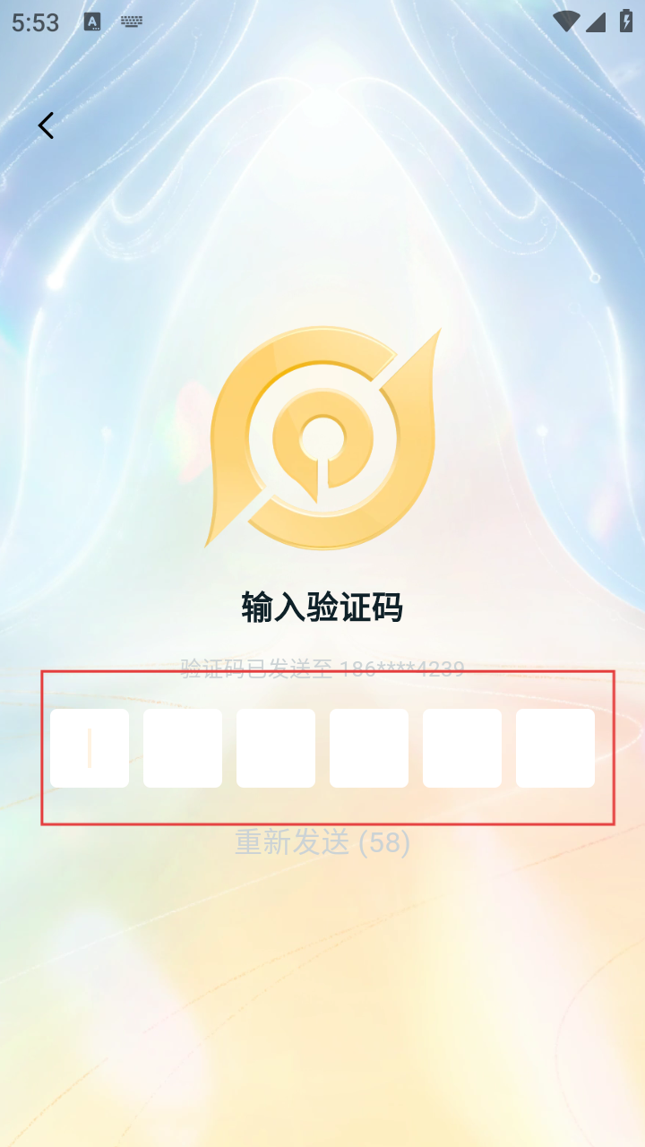 4、收到验证码后,在输入验证码页面,将验证码依次填入对应输入框,完成验证登录。
