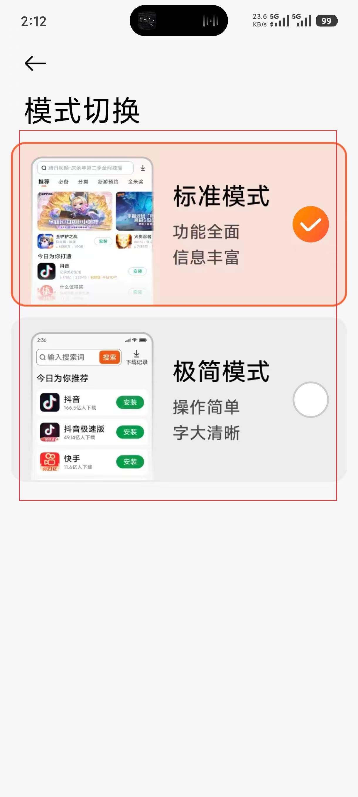 4、标准模式功能全面、信息丰富;极简模式操作简单、字大清晰,可根据需求选择切换。