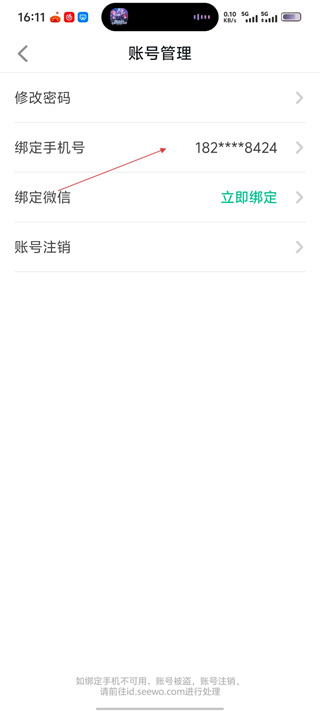 4、进入账号管理页面后,可点击“绑定手机号”选项,查看或管理已绑定的手机号信息。