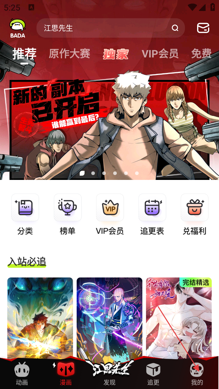 1、在软件首页,可浏览推荐漫画,通过【分类】【榜单】等功能找内容,点击【我的】进入个人页面。