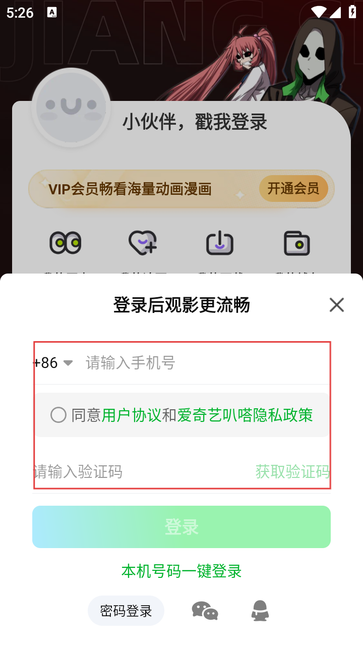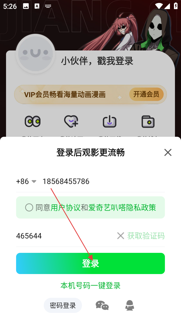 3、在登录界面,输入手机号码,勾选同意协议并获取验证码后,点击【登录】即可完成账号登录。