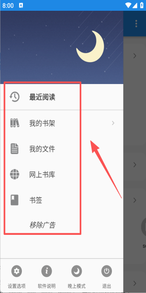 3、点“移除广告”并切夜间模式,护眼同时享受无干扰纯净界面。