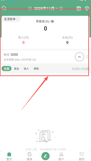 1、首先在手机上下载并安装熊猫记账,完成后打开应用,用户将看到简单明了的主页布局。