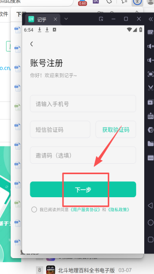 4、在账号注册页面,输入手机号并点击“下一步”。完成手机验证后继续注册流程。