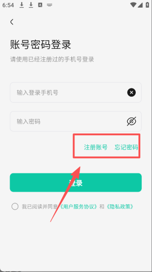 3、在账号密码登录页面,点击“注册账号”。若无账号,需先注册才能登录。