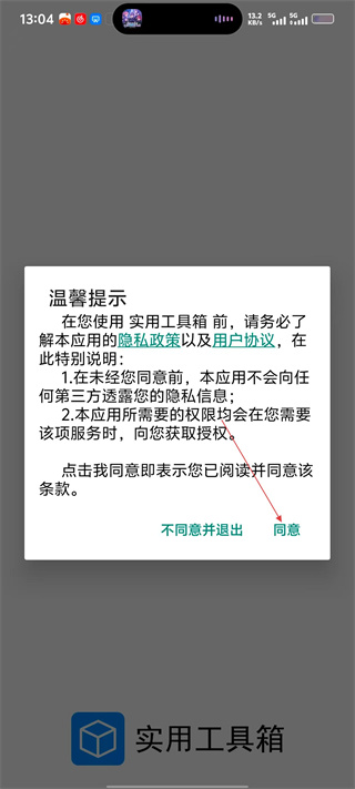 1、使用实用工具箱前,需阅读【隐私政策】和【用户协议】,了解信息保护等内容后点击【同意】,方可使用服务。
