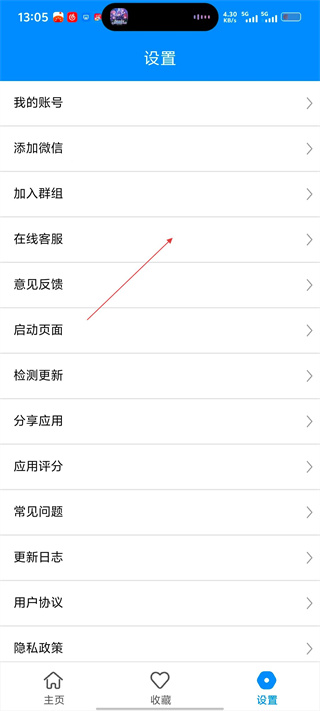 3、进入设置界面后,点击【在线客服】选项,可获取客服联系方式,以便咨询问题。