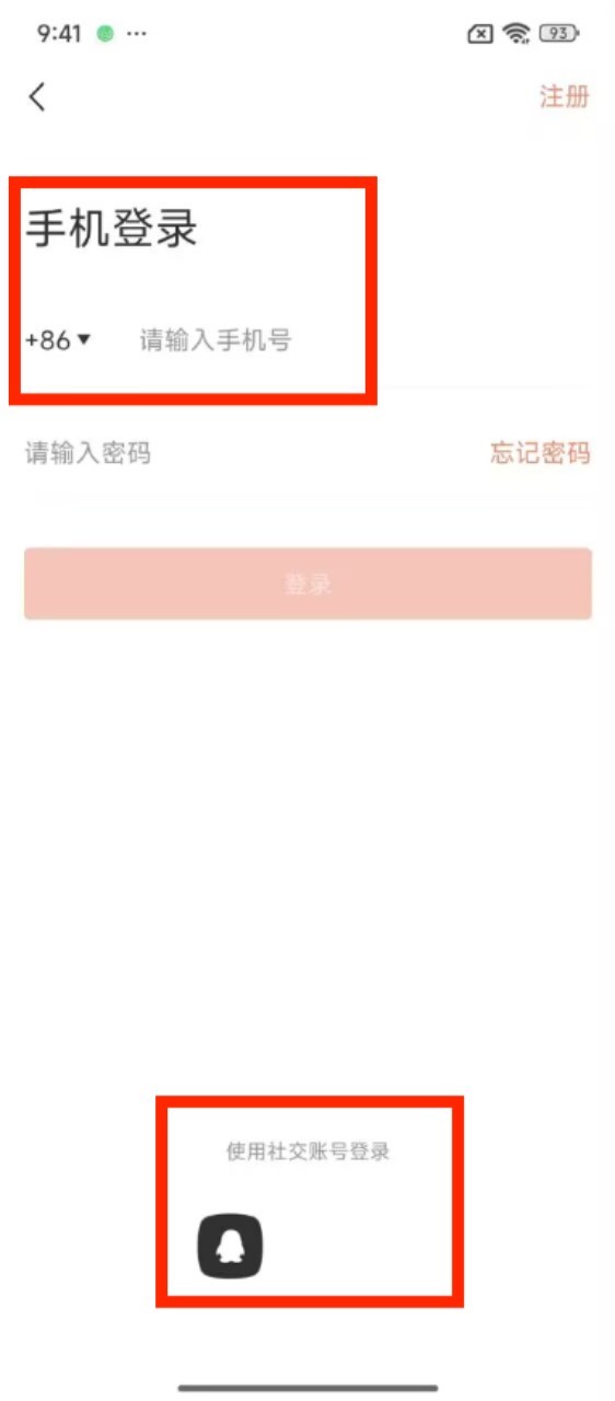 4、进入登录界面,可选择手机登录,输入手机号与密码完成登录,也能通过社交账号的快捷方式来登录账号。