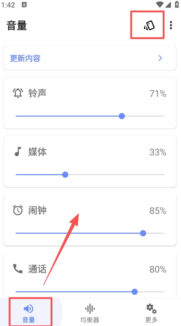 1、进入音量页面,可拖动滑块调整铃声、媒体等不同场景的音量数值,适配自身听觉需求。