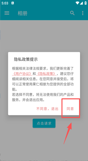 1、打开应用阅读隐私政策提示后点击同意进入相册主界面。