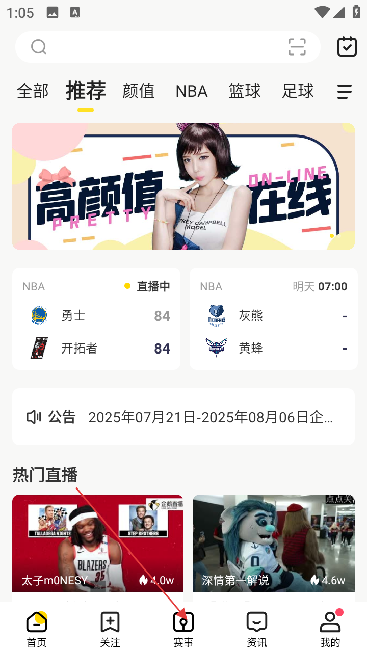 提供篮球nba,足球比赛等赛事直播服务类型:视频播放