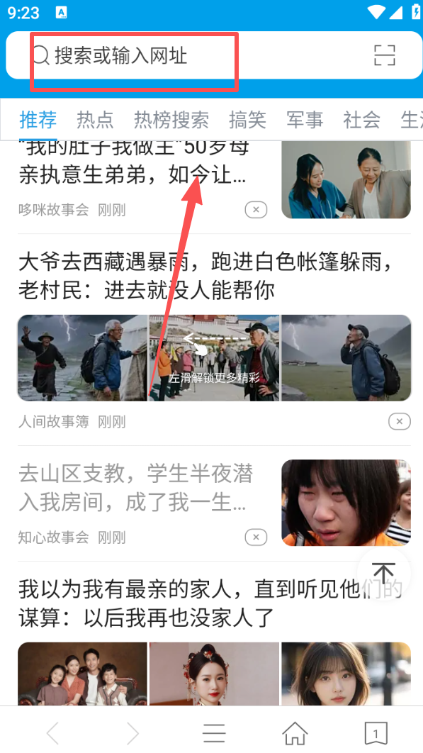 1、在浏览器顶部的搜索栏,可输入关键词或网址,快速查找所需内容。