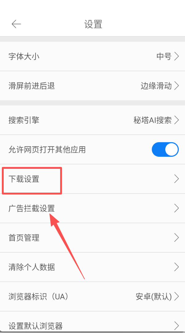 3、在设置页面中,找到下载设置入口,可对下载相关选项进行调整。
