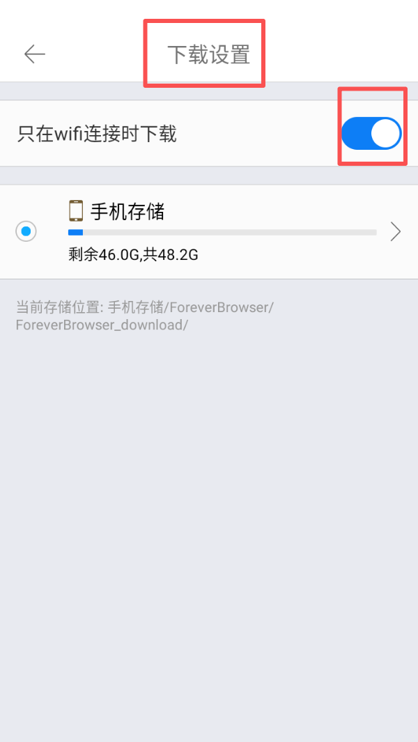 4、进入下载设置后,可开启 “只在 wifi 连接时下载” 功能,节省流量消耗。