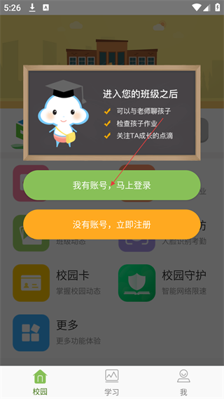 2、进入APP主界面后,点击【我有账号,马上登录】按钮,进入登录页面。