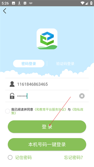 4、勾选“我已阅读并同意《和教育平台服务协议》与《隐私政策》”选项,点击【登录】按钮完成账号登录操作。