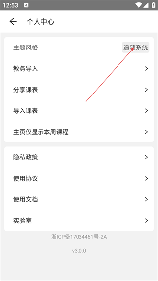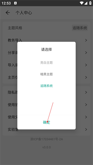 2、在个人中心界面,点击“主题风格”右侧的“追随系统”选项,弹出主题选择弹窗。