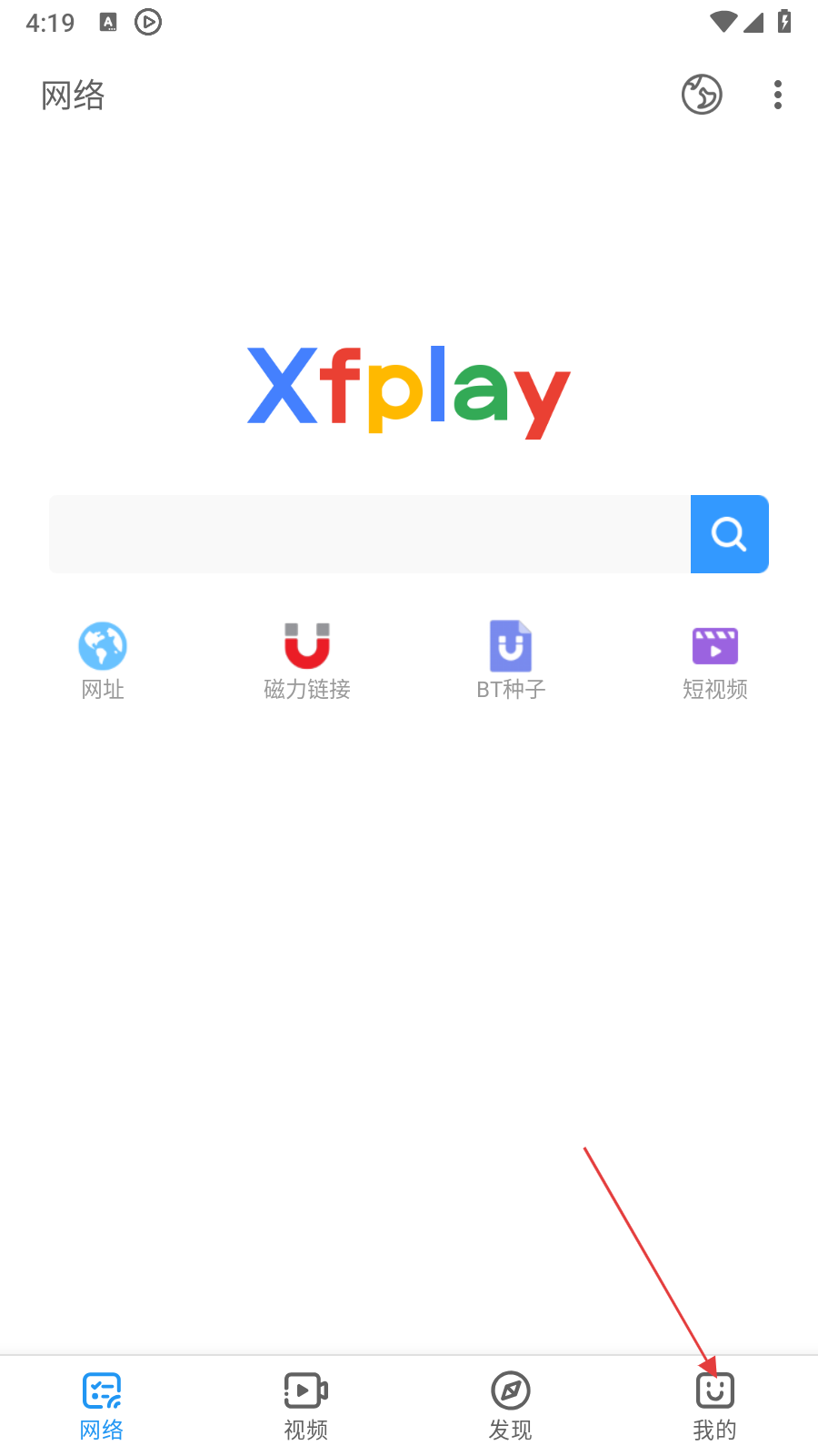 1、在Xfplay应用首页,点击右下角【我的】,进入个人中心页面。