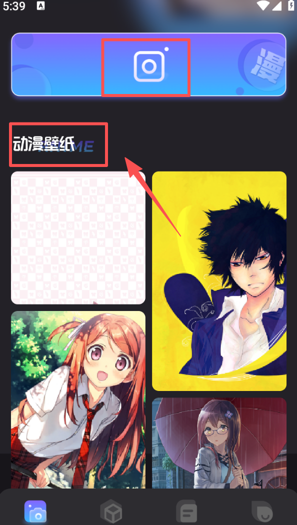 1、进入主页面,在 “动漫壁纸” 板块可挑选喜欢的壁纸素材,也能点击顶部按钮查看更多相关内容。