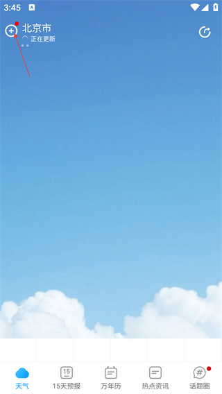 1、在天气主界面,点击左上角“+”按钮,进入添加城市页面。