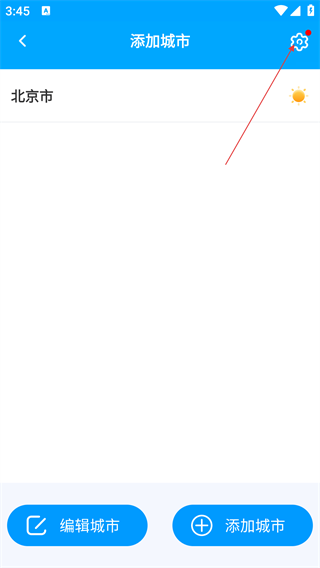 2、在添加城市页,点击右上角设置图标,进入设置界面。