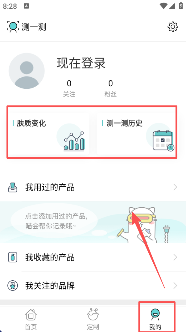 4、进入 “我的” 页面,查看肤质变化趋势与测肤历史,管理用过的产品、收藏的内容。