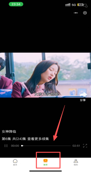 3、在视频播放页面点击“推荐”按钮,发现更多视频。