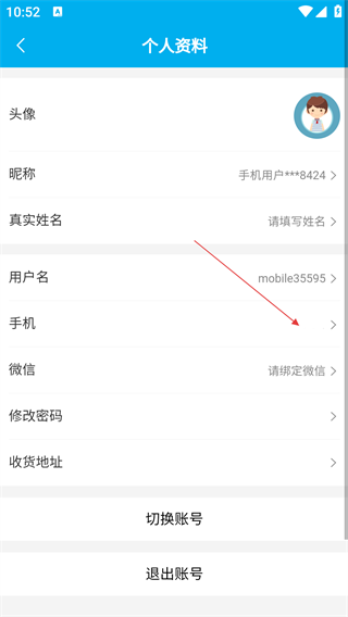 3、在个人资料页面,选择【手机】选项,进入手机号管理相关流程。