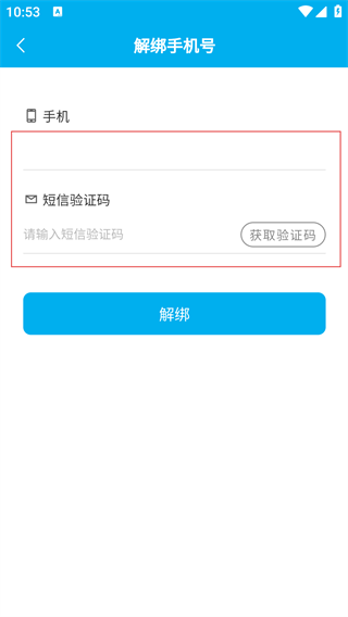4、在“解绑手机号”页面,输入当前绑定的手机号,点击【获取验证码】并填写,完成后点击【解绑】,即可进入手机号的更换操作。
