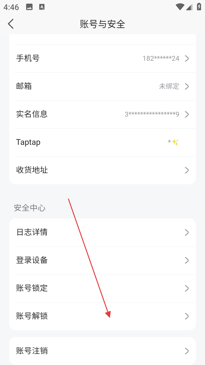 4、在账号与安全界面,点击【账号解锁】选项,可对已锁定的账号进行解锁操作,恢复账号正常使用。