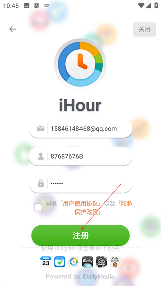 4、填写好邮箱、用户ID、密码后,勾选同意用户使用协议和隐私保护政策,点击【注册】按钮完成注册操作。