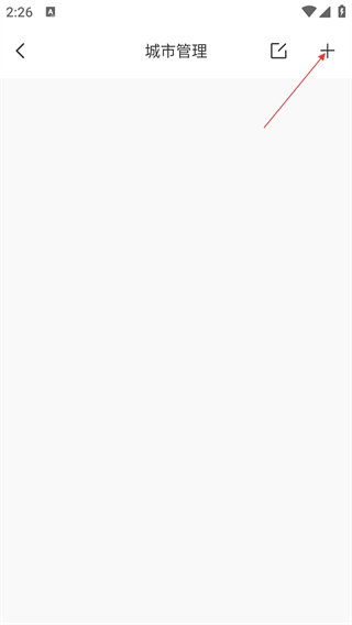 2、在城市管理页,再次点击右上角“+”按钮,进入添加城市界面。