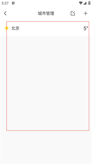 1、在天气主界面,点击右上角“+”按钮,进入城市管理页面。