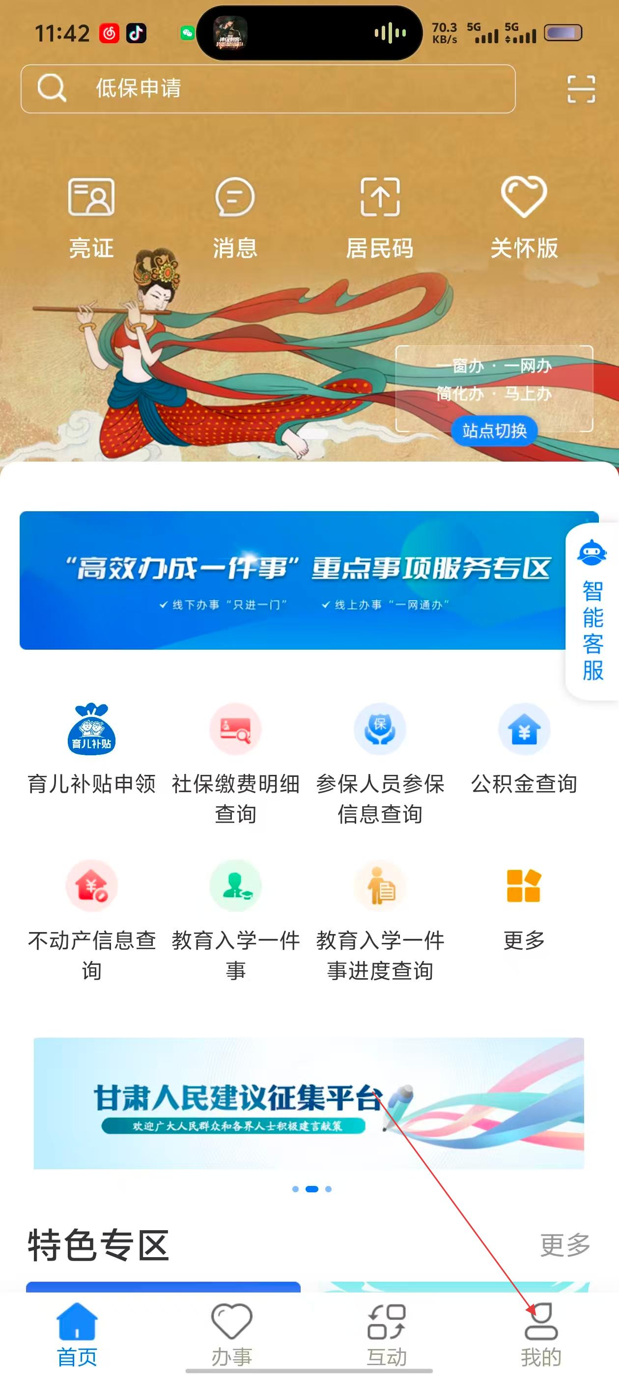2、在“甘快办”首页,点击底部的【我的】选项,进入个人中心页面。