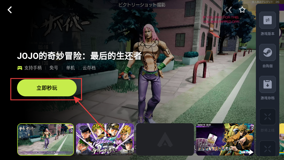 1、在游戏中心找到《JOJO的奇妙冒险:最后的生还者》,点击进入游戏详情页哦。
