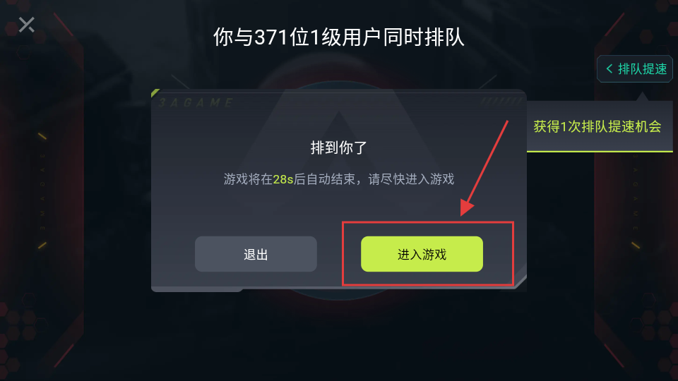 3、排到后点击【进入游戏】,就能快速进入游戏界面,开始游玩哦。
