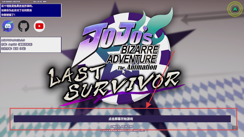 4、进入游戏后点击屏幕,就能开始《JOJO的奇妙冒险:最后的生还者》的游戏之旅啦。