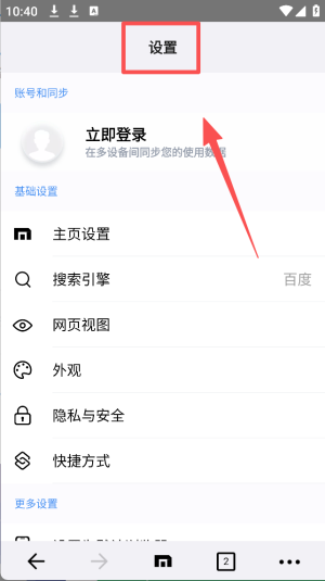 3、在设置页面,点击“立即登录”同步您的使用数据。