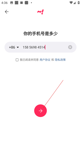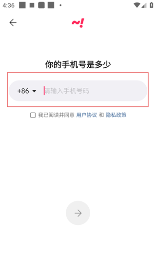 3、在手机号登录页默认选择【+86】国家区号,输入目标手机号并勾选【用户协议】同意选项。