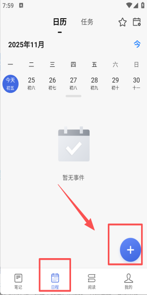 3、在日历页面点击“今天”可添加日程任务,随时查看事件提醒。