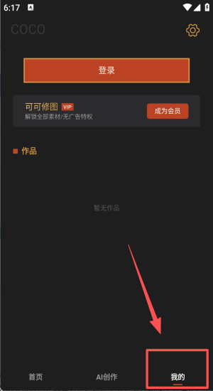 4、打开登录页成为可可修图VIP,解锁全部素材并立即享受无广告特权。