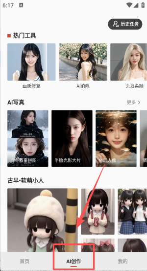 3、进入热门工具页,选画质修复或AI写真,再挑光影大片自动生成精修图。