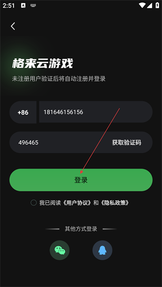 4、勾选《用户协议》和《隐私政策》后,点击【登录】,完成账号登录,即可使用云游戏、云存档等功能。