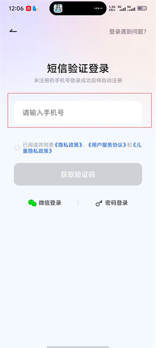 3、在【短信验证登录】页,需先输入手机号,勾选相关协议后,才能获取验证码完成登录,也支持微信或密码登录。