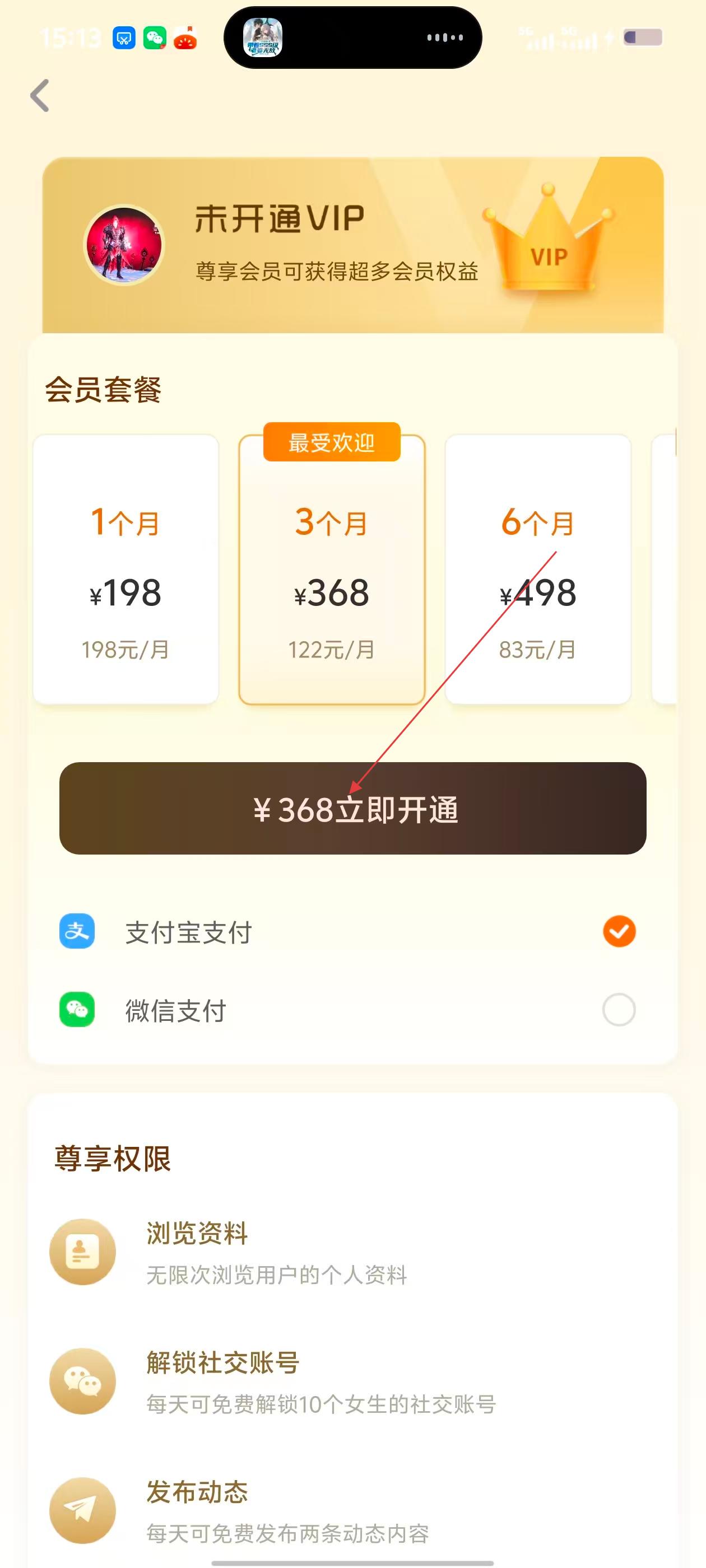 4、在会员开通页面,选择会员套餐和支付方式后,点击对应开通按钮,即可开通尊享会员。