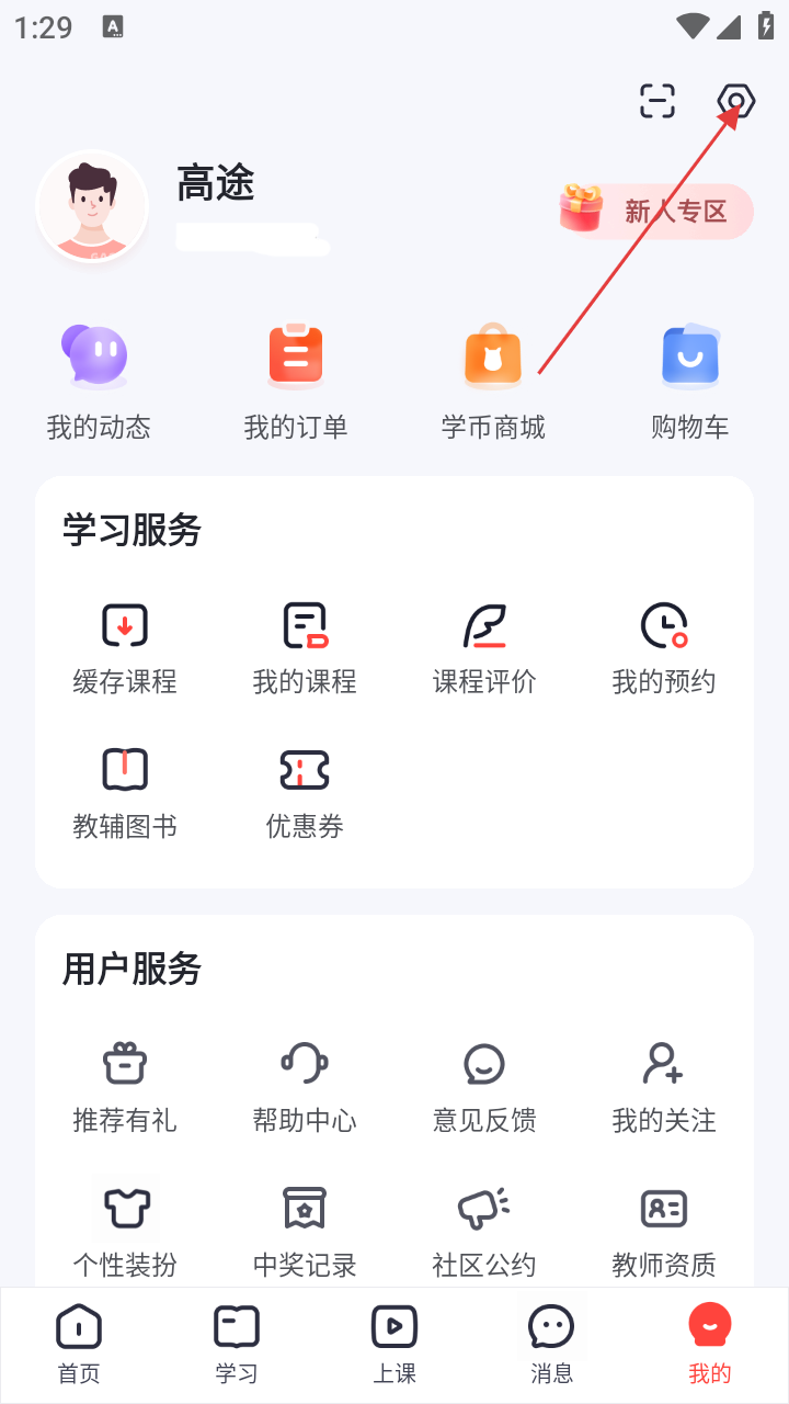 1、在首页点击右下角【我的】选项,进入个人页面,可查看学习服务等相关功能。